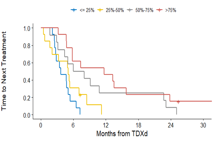 图1.按HS-HER2四分位数划分的T-DXd下一次治疗时间(TTNT)