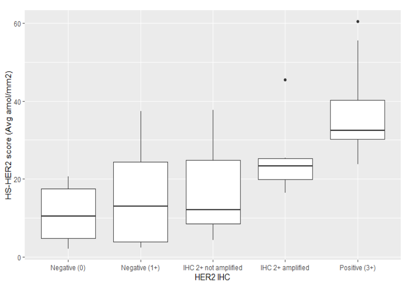 图3.在所有患者中,HER2 IHC评分和HS-HER2评分的关联强度