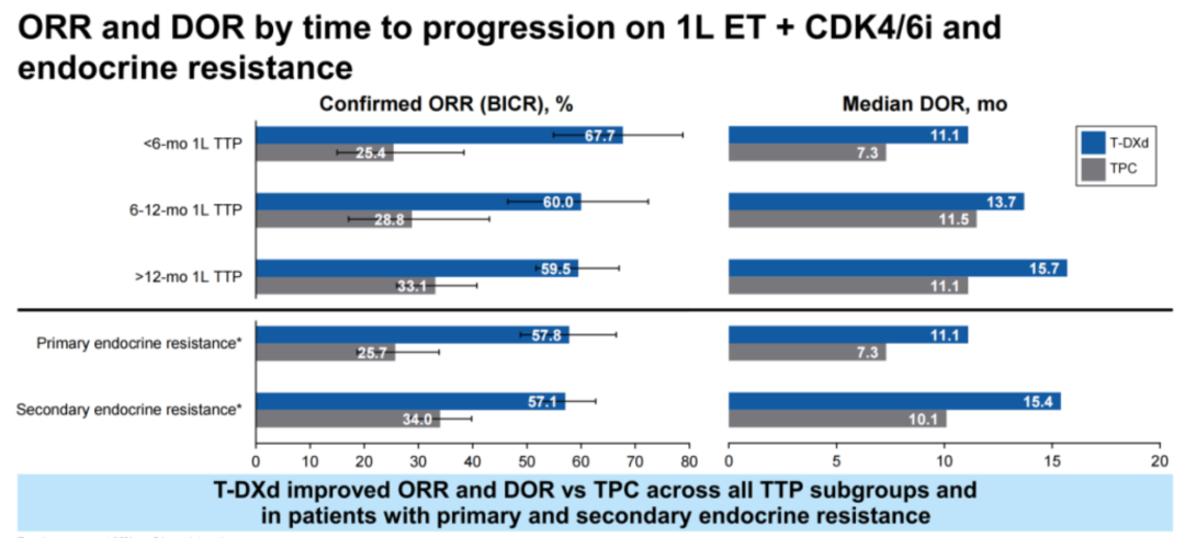 △DB-06研究:不同内分泌进展时间亚组患者的PFS和ORR