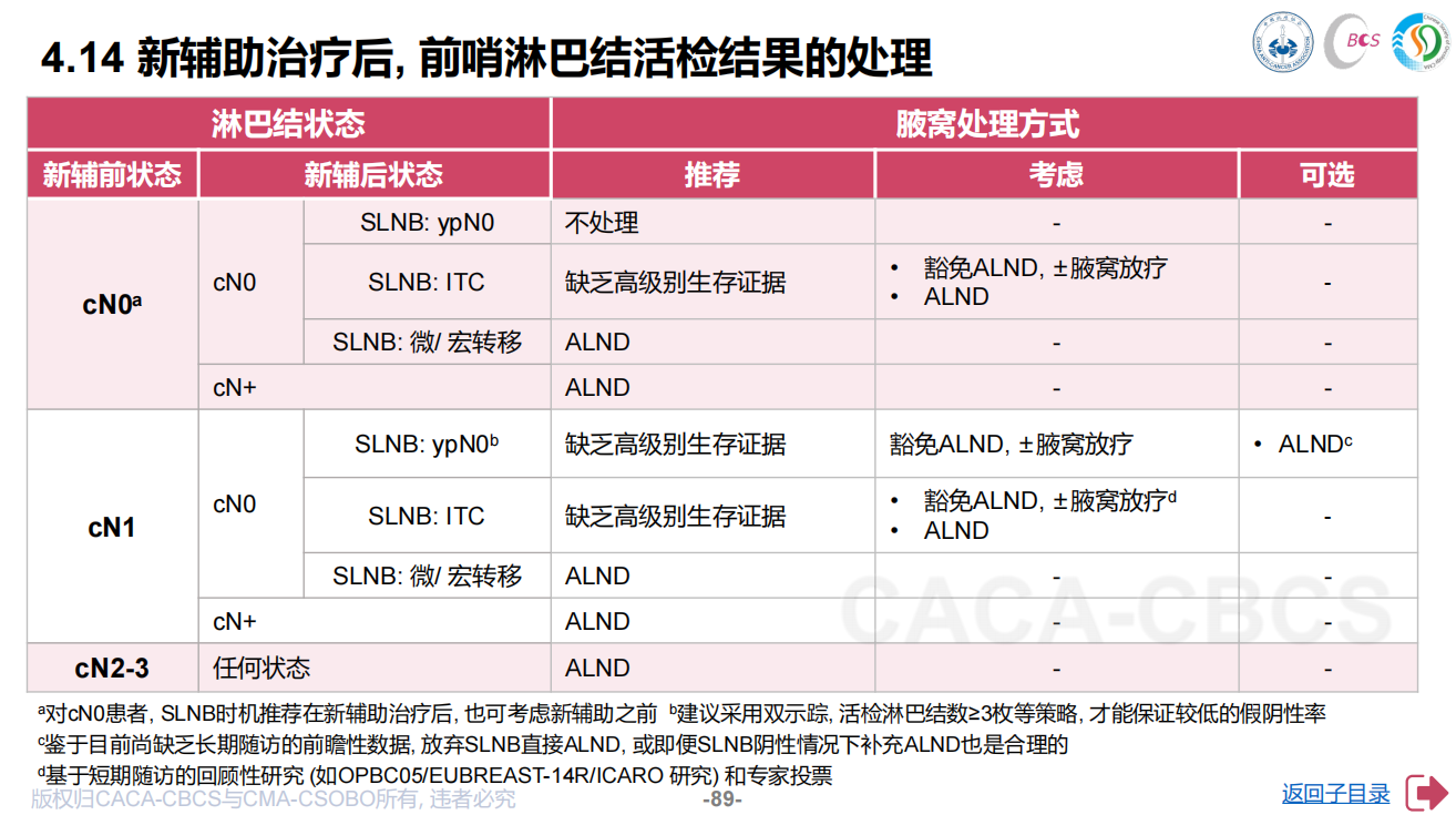 ·新版小红书对于新辅助治疗后腋窝淋巴结“降阶梯”治疗,结合最新循证进行了详细的规定。