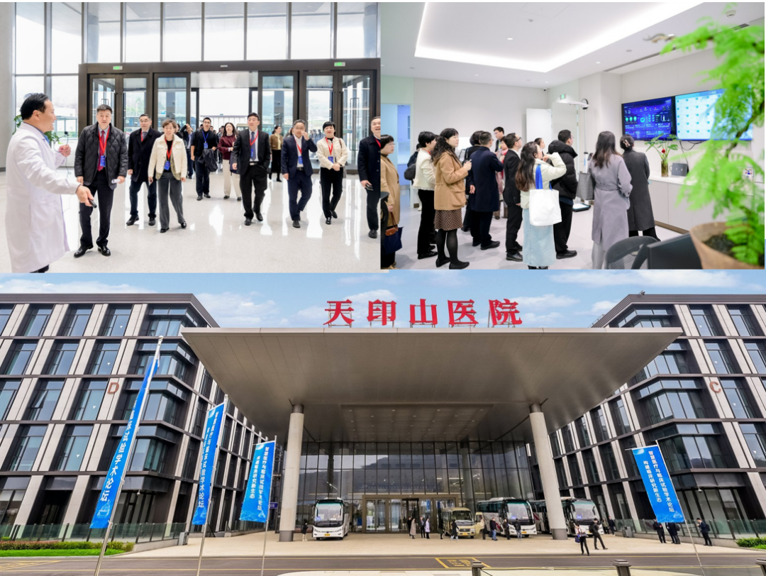 在上午会议的休息间歇,与会代表集体参观访问了位于江宁区风景区的中国药科大学第一附属医院(南京天印山医院)。医院副院长张志敏教授和临床试验机构办公室主任陈映霞教授陪同,介绍了该院的软硬件设施,在医、教、研三位一体的探索经验和成就,形成了以肿瘤学科为主、兼设普通疾病的“大专科、小综合”诊疗格局;尤其在科研领域,将充分发挥临床实践与实验室研究紧密结合的优势,设立肿瘤学新技术研究所、分子生物学与免疫学实验室、符合国际质控认证的生物样本库和Al辅助临床试验中心等高技术平台。天印山医院之行,给大家留下了深刻的美好印象。
