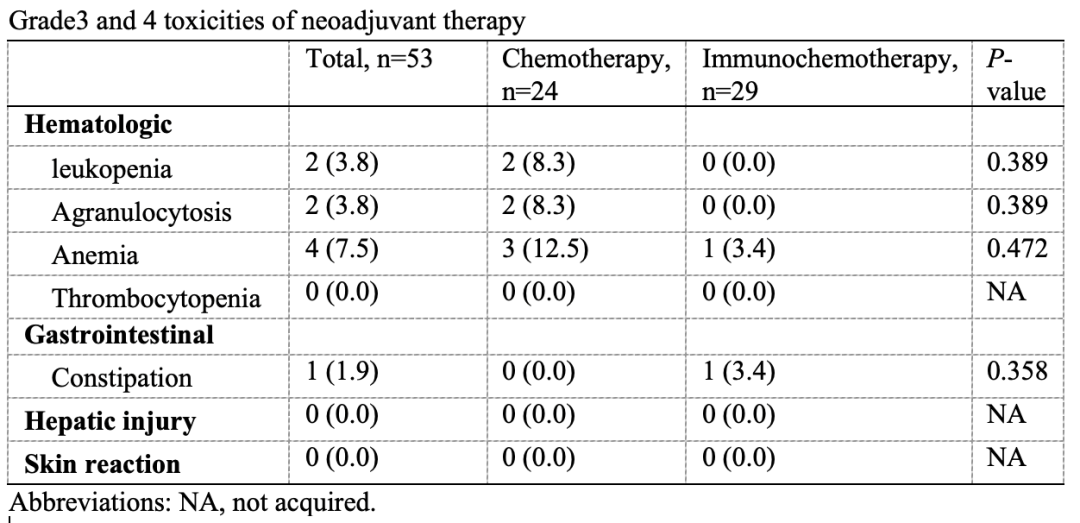 免疫治疗联合化疗组和常规化疗组3-4级不良反应的发生率没有显著差异。