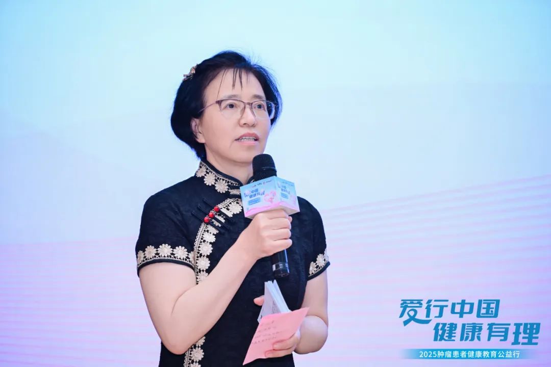 CSCO患者教育专家委员会副主任委员莫雪莉教授作为活动指导方发言。莫雪莉教授指出,CSCO患者教育专家委员会自成立之初,便以组织业内专家向广大肿瘤患者输送疾病知识、给予精神鼓励为使命。专委会组织全国知名专家教授积极举办各类形式多样的患者教育活动,助力患者更透彻地理解疾病,更积极地配合治疗,从容应对治疗过程中涌现的诸多挑战。此次首钢医院患者关爱活动是2025年系列活动的首站,今年还会在全国十余个城市举办这样的活动。