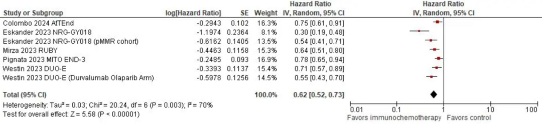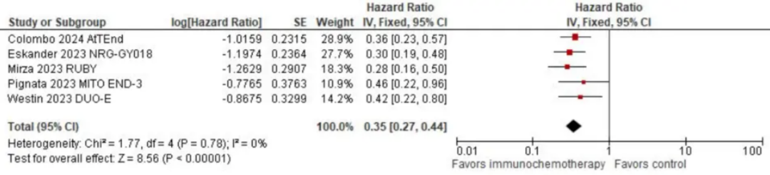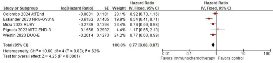 -All five trials compared immunotherapy combined with chemotherapy(carboplatin and paclitaxel)versus placebo plus in chemotherapy in primary advanced or recurrent EC.