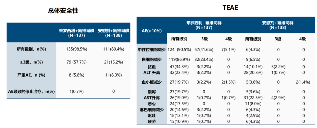 在安全性方面,数据同样令人鼓舞。来罗西利联合氟维司群组严重不良事件发生率低于安慰剂组(5.8%vs 8.0%),且仅有1例(0.7%)患者因不良事件导致停药。最常见的治疗期间不良事件(TEAEs)为中性粒细胞减少和白细胞减少。极大提高了患者长期治疗的依从性,提升了生活质量及户外活动的可行性。未增加肝毒性风险以及Q-T间期延长风险,且未增加皮疹风险,显著提升患者生存质量。在临床应用时需注重血液毒性的预防和对症处理,整体安全性可控。