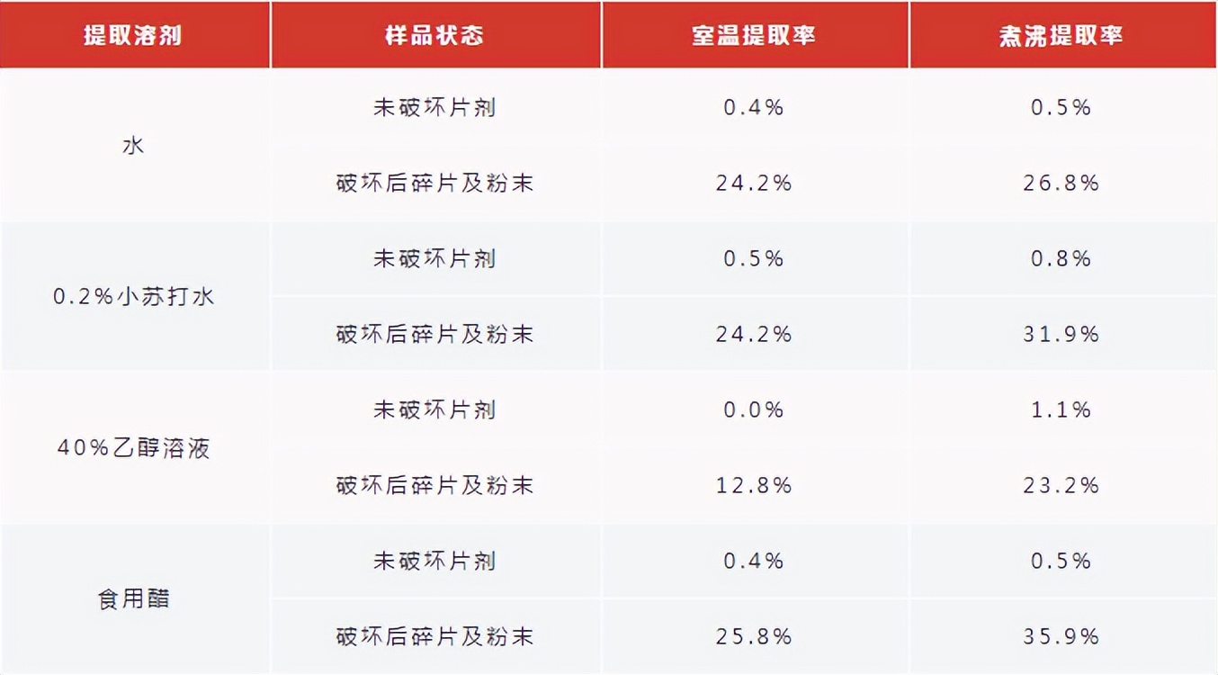 表1盐酸氢吗啡酮缓释片在不同溶剂、状态及环境中的提取率
