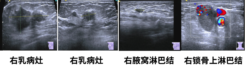 3.右腋下(1.0*0.5cm)及右侧锁骨上淋巴结(2.6*1.8cm),转移可能。