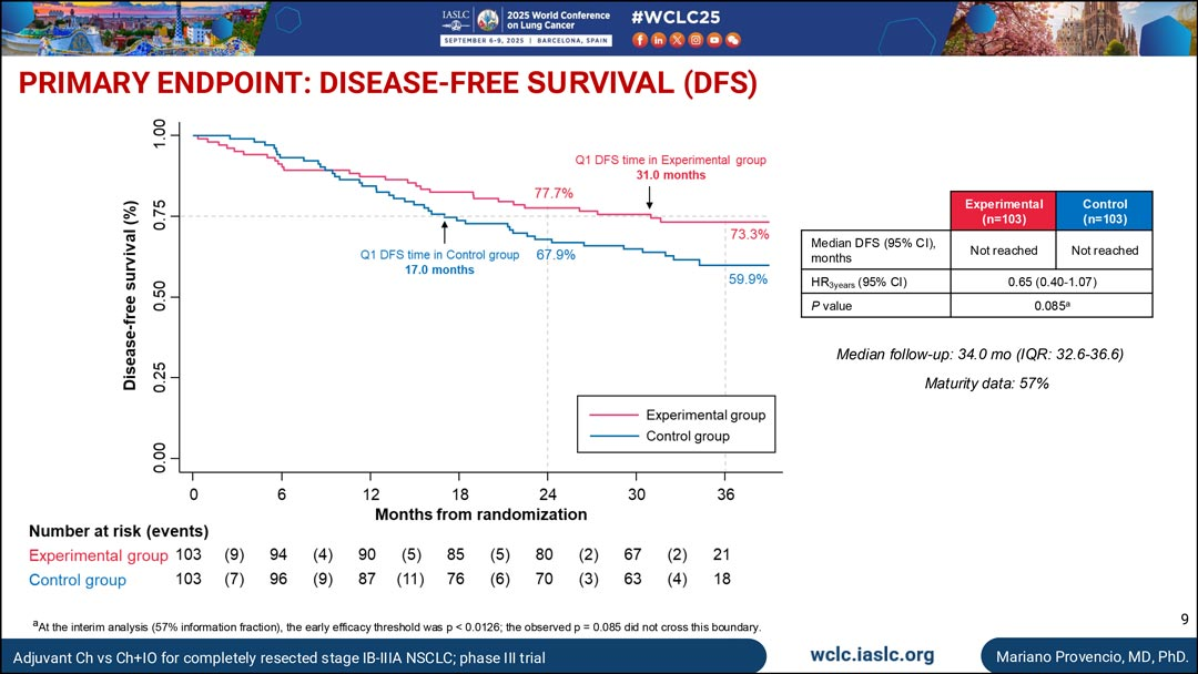 WCLC 2025丨NADIM ADJUVANT中期数据:辅助化疗-免疫治疗或可降低完全切除术后NSCLC患者的复发风险