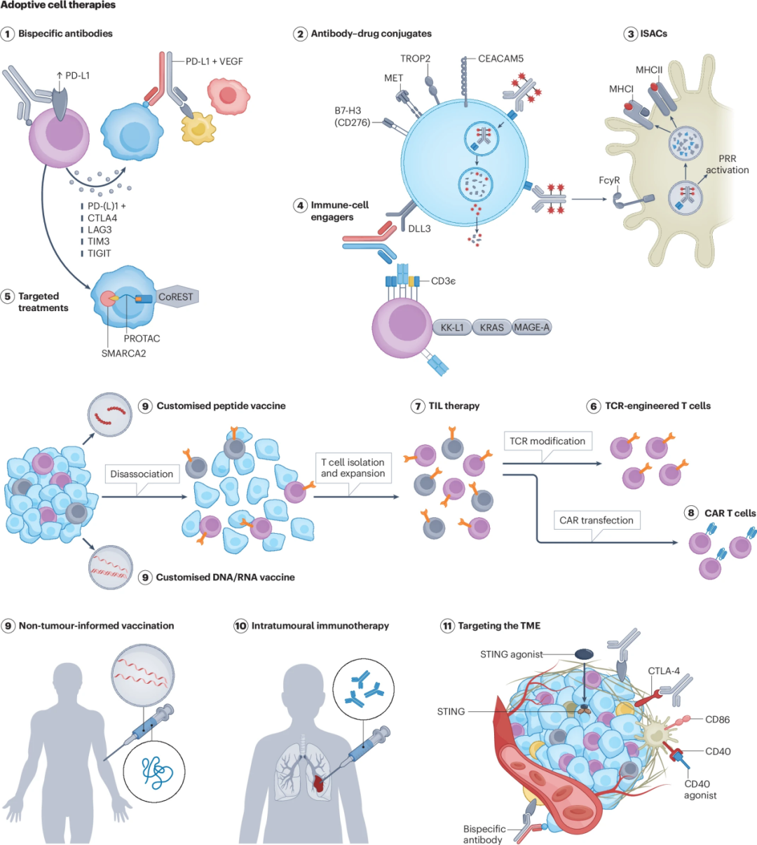 编者按:靶向PD-1/L1的免疫检查点抑制剂(ICIs),已全面重塑了驱动基因阴性晚期非小细胞肺癌(NSCLC)的治疗格局。然而在临床实践中,绝大多数患者最终仍会对ICIs产生耐药,这是肿瘤生物学特性、肿瘤微环境(TME)动态变化及宿主相关因素(例如菌群失调和特定器官的微环境)共同驱动的结果,而导致耐药的核心原因是免疫抑制性TME的形成;当前应对ICIs耐药的治疗策略,如各种基于抗体的疗法(双特异性抗体、抗体偶联药物等)、靶向治疗、过继性细胞疗法、治疗性疫苗或肿瘤内免疫疗法,大多也以恢复有效的抗肿瘤免疫应答为目标。近期,德国肺癌研究中心Martin Reck教授、瑞士洛桑大学医院Solange Peters教授等知名专家就在Nature Reviews Clinical Oncology共同发表权威综述文章,系统性地总结ICIs耐药后晚期NSCLC的最新治疗进展,并为新兴的临床策略和未来的研究方向提供独到见解,本篇将是该综述精华内容编译的最后一部分(即第三篇),前文见:Nature Reviews权威综述丨晚期非小细胞肺癌“后免疫治疗”时代,免疫耐药后的治疗该何去何从?(二)