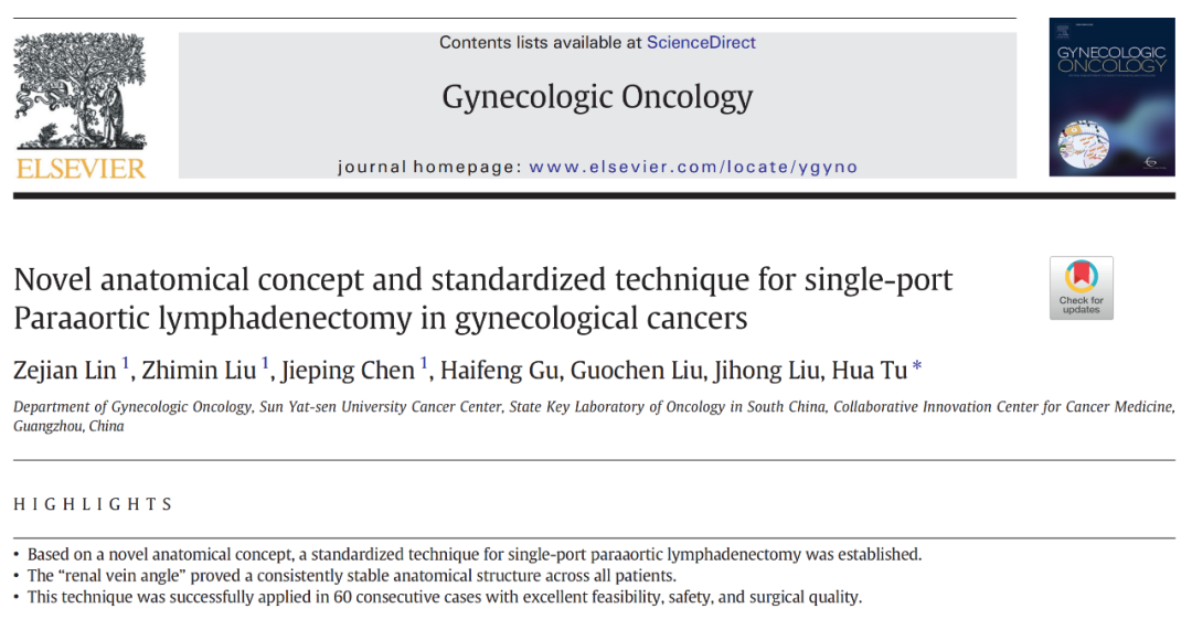 在今年的大会上,中山大学肿瘤防治中心涂画教授团队完成的“单孔腹腔镜腹主动脉旁淋巴结清扫术(肾血管水平)——基于新解剖理念的标准化技术”,成为全球入选的6例手术视频中唯一的中国作品,并作口头报告。这标志着我国在妇科肿瘤微创外科领域的技术创新,已赢得国际同行的广泛关注与认可。相关技术细节与临床成果也已同步发表于国际权威期刊《Gynecologic Oncology》。
