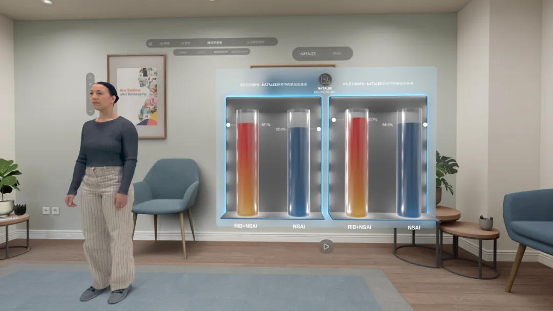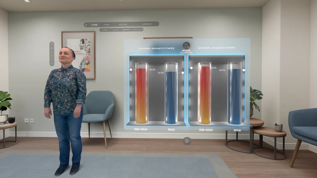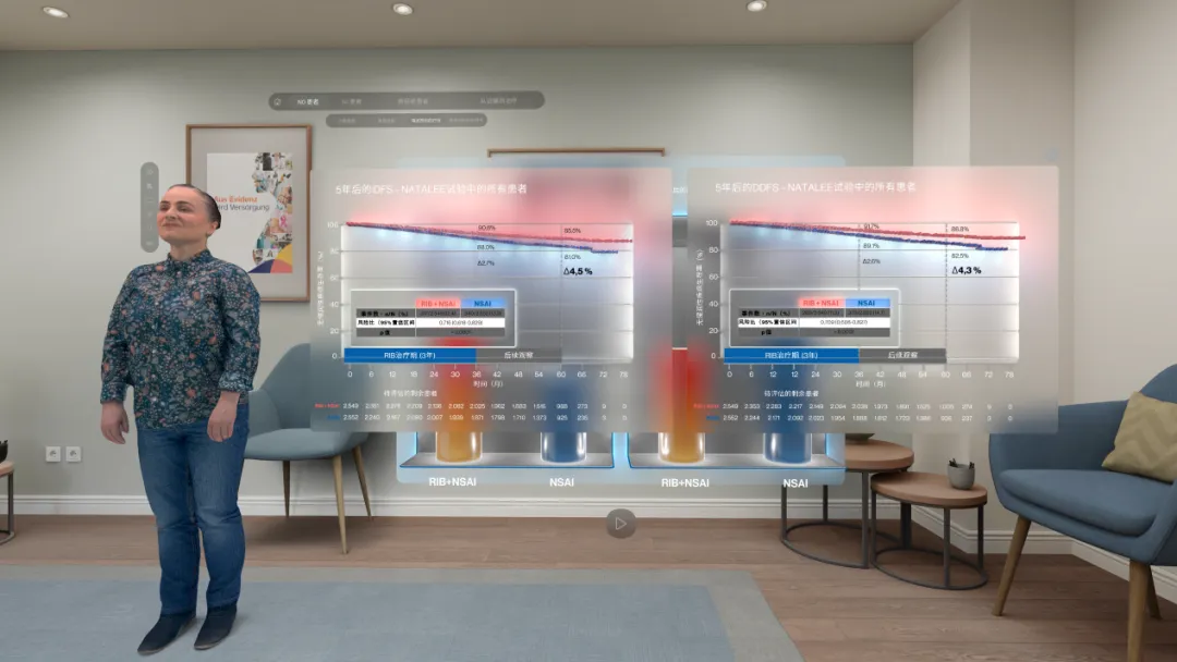 VR系统通过动态可视化这些风险数据与疗效结果,将抽象的统计学差异转化为直观的视觉体验。医生在虚拟环境中操作肿瘤模型时,系统实时叠加瑞波西利的作用机制与风险降低数据,形成“视觉-数据”闭环,强化对复发风险的系统认知和疗效理解。