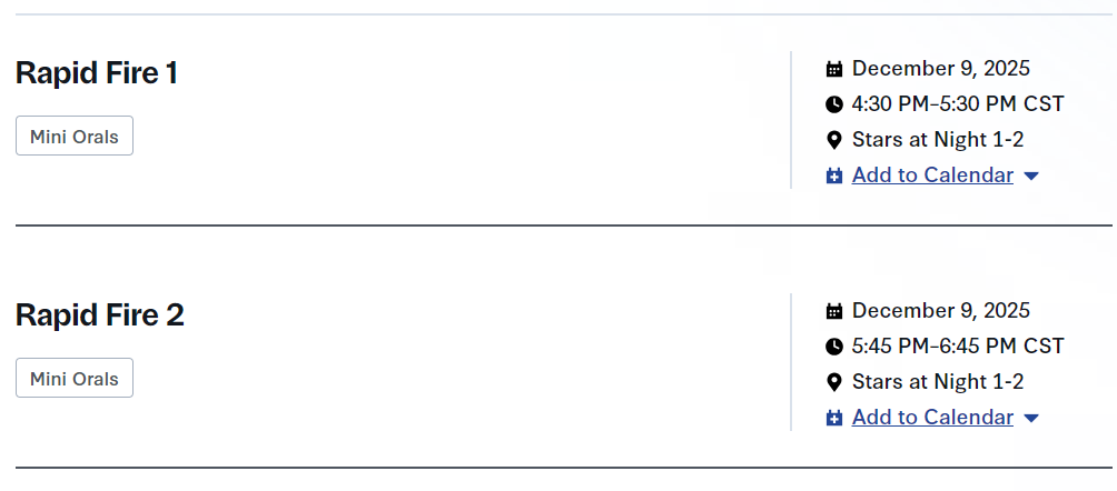 两场Mini口头报告:1、Rapid Fire 1;2、Rapid Fire 2。
