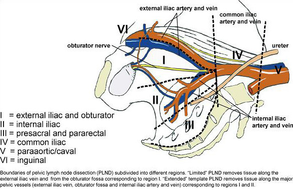 髂内血管周围是前列腺癌淋巴结转移的优先区域,重要性超过有限清扫的闭孔区。包含Marcille窝和髂总区的扩大清扫有助于降低遗漏微转移的概率,然而是否能够提供治疗作用仍然未知。