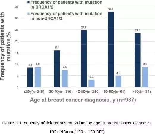 该研究虽然并未发现非BRCA1/2基因有害突变的预测因素,但是具有某些临床特征患者的若干特定基因突变率较高。
