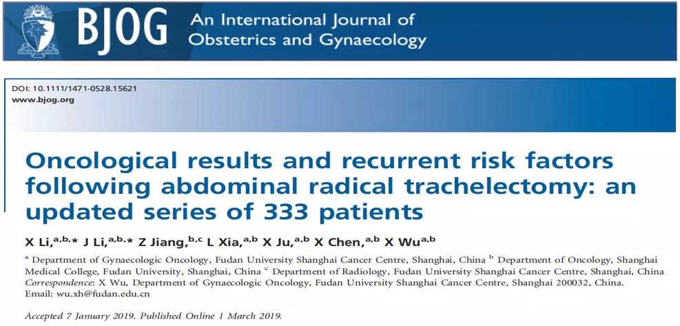 编者按:2019年第50届美国妇科肿瘤年会(SGO)于当地时间2019年3月16~19日在美国檀香山举行。本次会议报道了复旦大学肿瘤医院吴小华教授团队开展的多项重要研究结果,以下为研究的主要内容。