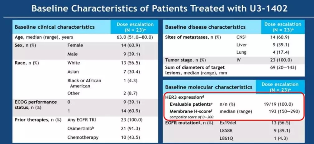 约57-67%的EGFR突变NSCLC患者携带一定程度的HER3蛋白表达,为此日本研发了HER3抗体偶联体药物U3-1402。