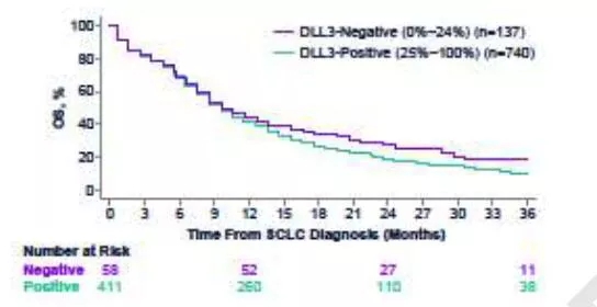 在本研究中,DLL3对总生存率没有预后作用。多数SCLC患者表达DLL3蛋白,DLL3的表达与患者预后无关。SCLC患者的中位总生存期很短,迫切需要新的治疗方法。