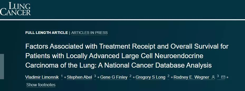大细胞神经内分泌肿瘤是一种较为少见的肺恶性肿瘤,临床数据较少。近期,Limonnik等人借助NCDB大数据库,对大细胞神经内分泌癌患者的预后进行了分析。