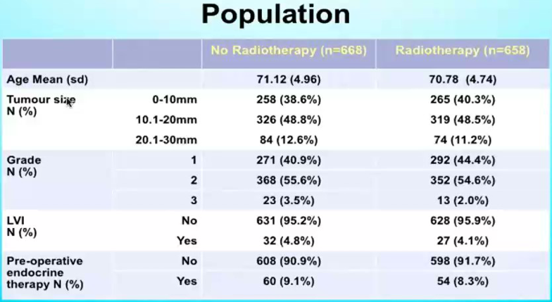 1、GS2-03:65岁以上行保乳手术的早期浸润性乳腺癌患者术后辅助内分泌治疗+/-全乳放疗——PRIME2研究的10年随访结果?