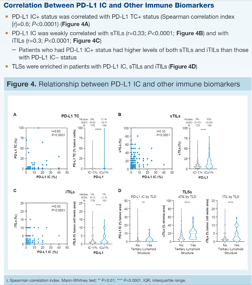 【结论】在IMpassion 031研究对照组中,几个肿瘤免疫生物标志物相互关联,并与升高的pCR率相关;但在阿替利珠治疗组中只有PD-L1在IC或TC上的表达与pCR率数值增加有关。初步分析显示,免疫治疗联合化疗促进淋巴细胞与肿瘤细胞的密切接触。有必要进一步评估免疫治疗组的肿瘤免疫微环境。