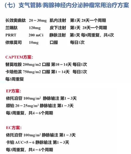 七、支气管肺/胸腺神经内分泌肿瘤的常用治疗方案