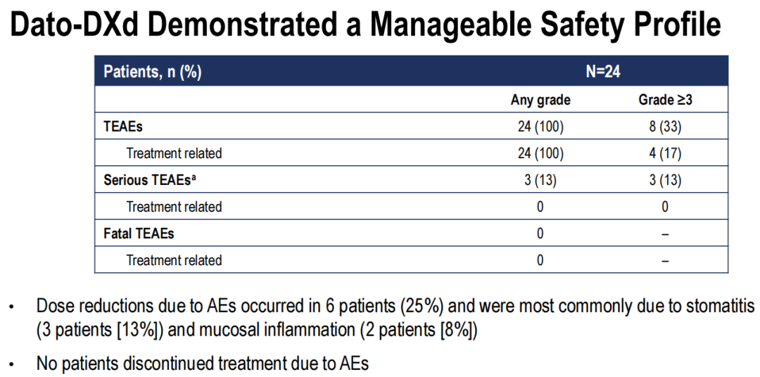 1. Dato-DXd安全性可控,没有患者因不良事件而停止治疗。