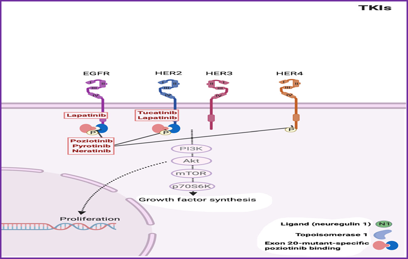 TKI穿过细胞膜,结合到胞质的酪氨酸激酶的ATP结合部位,直接抑制磷酸化和下游级联反应,发挥杀伤作用。胞内作用能抑制胞外大分子耐药的同时,TKI和大分子单抗以及ADC药物亦无交叉耐药,具有协同效应。所谓“小分子大作为”,代表着小分子药物未来的无限可能。