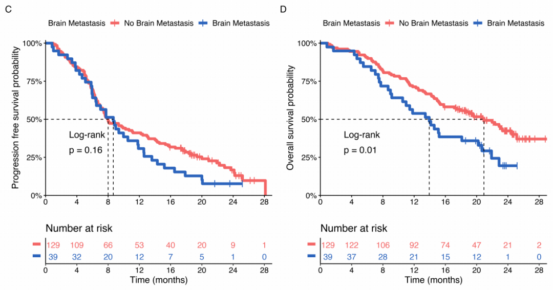 图3. 脑转移人群有无手术/放疗患者的PFS和OS