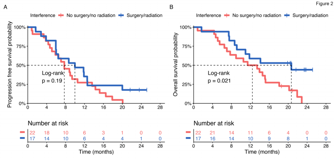 我们的这项RWS也验证了此观点,接受手术/放疗(S/R)相较于未接受手术/放疗(NS/NR)的脑转移患者PFS(9.97 vs 7.73个月,P=0.19)和OS(20.67 vs 12.43个月,P=0.021)显著延长,临床获益率(58.6% vs 41.4%)有所提高。
