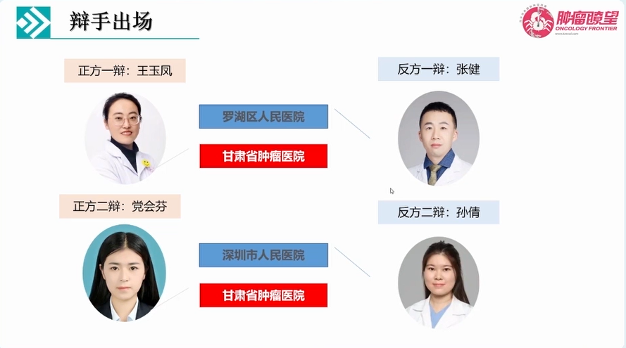 编者按:HER2阳性乳腺癌早期治疗进展后的一线治疗策略该如何进行选择?2022年8月16日19:00~20:00,在二位导师——复旦大学附属肿瘤医院张剑教授和广东省中医院陈前军教授的带领下,一场关于“HER2阳性乳腺癌早期治疗后1年内发生进展的患者一线使用T-DXd还是THP?”的辩论拉开。正方辩手——甘肃省肿瘤医院党会芬医生、甘肃省肿瘤医院王玉凤医生为“T-DXd”据理力争,反方辩手——深圳市罗湖区人民医院张健医生、深圳市人民医院孙倩医生则捍卫“THP”的治疗地位。本文特将辩论赛内容进行整理,以飨读者。