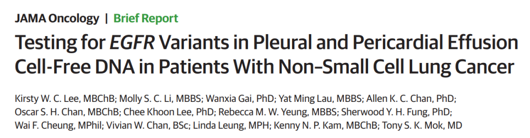 现代肿瘤学的发展为肺癌的治疗提供了多种突破性的治疗手段,肺癌也成为更新最为迅速的实体瘤之一。为了帮助临床医生深入、全面掌握该领域重磅进展,《肿瘤瞭望》携手上海市胸科医院呼吸内科主任钟华教授及韩宝惠教授,联手打造临床进展系列推送——“钟”声“惠”言。通过对高质量肺癌领域临床研究的解读,以促进临床诊疗实践的提高。第11期,两位教授为大家带来“恶性浆膜腔积液中的cf-DNA检测EGFR基因突变的可行性”的研究解读,该研究全文已经发表于JAMA Oncology杂志。