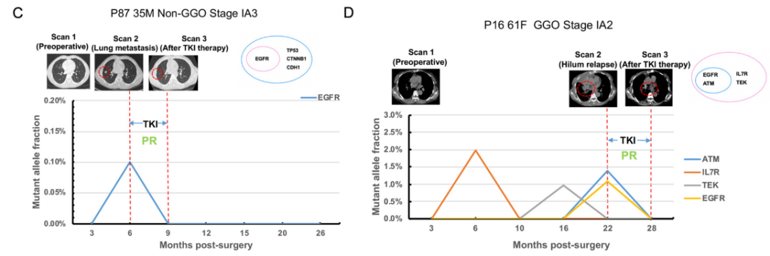 疗效评估:早在FASTACT-2研究中,研究者就将第8周时候的ct-DNA清除的数据用于辅助评估疗效,在首次影像评估为PR且8周时ct-DNA未能检测到的患者,93%的患者在第16周时PR仍然持续,中位响应持续时间为14.9个月,而在疾病评估为SD且第8周ct-DNA未能检测到的患者,28%的患者在16周时评价为PR。