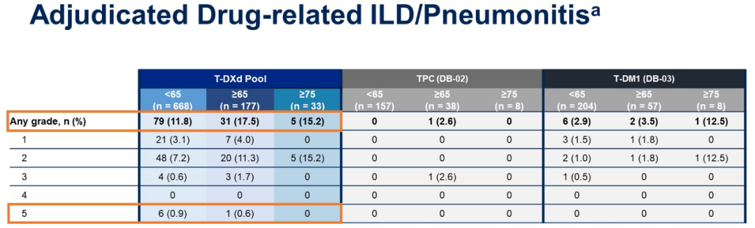 △DB-01、02、03研究汇总分析:<65岁和≥65岁患者的常见不良事件及ILD/非感染性肺炎发生率总体一致(ASCO 2023;摘要号:1006)
