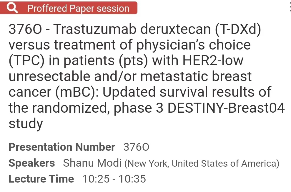 [13]Trastuzumab Deruxtecan vs Treatmentof Physician’s Choice in Patients With HER2-Low Unresectable and/or Metastatic Breast Cancer:SubgroupAnalvses From DESTINY-Breast04.2022 SABCS.Abstract P1-11-01.