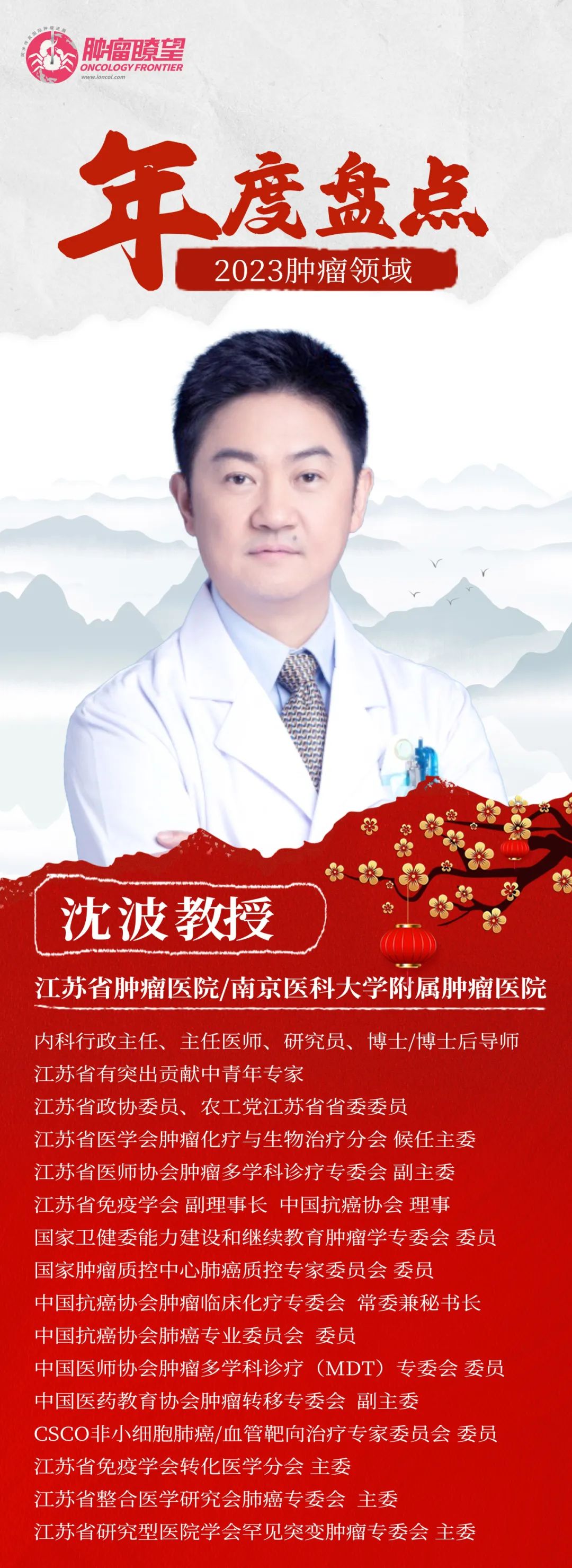 编者按:由江苏省免疫学会转化医学分会、江苏省医师协会肿瘤多学科诊疗专委会、江苏省研究型医院学会肿瘤罕见突变诊疗专委会主办,南京医科大学附属肿瘤医院/江苏省肿瘤医院、江苏省肿瘤专业质控中心、东部肿瘤罕见突变联盟承办的“2023恶性肿瘤年终盘点暨东部肿瘤罕见突变联盟罕见靶点紫金论坛”于2023年12月24日在南京举行。《肿瘤瞭望》有幸采访大会执行主席、江苏省肿瘤医院沈波教授介绍本次大会亮点,并分享2023年胸部肿瘤尤其是非小细胞肺癌(NSCLC)领域罕见突变肿瘤的研究进展。