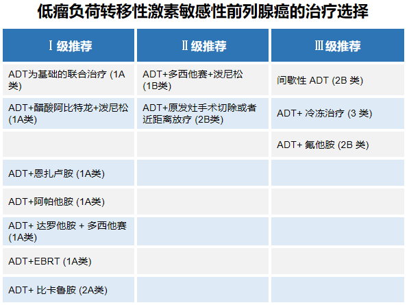 目前,转移性去势敏感性前列腺癌(mHPSC)是晚期前列腺中较为常见的类型,此类患者仍处于激素敏感阶段,预后相对于其他晚期疾病要好一些;其首选治疗策略是在雄激素剥夺治疗(ADT)的基础上联合其他治疗,包括化疗、新型内分泌治疗(NHT)、核素治疗、放疗、手术等。目前,临床实践或指南推荐主要根据肿瘤负荷进行分层[1],不同NHT用于低瘤负荷和高瘤负荷的循证医学证据有所不同。总体上,ADT+NHT已经成为mHSPC的首选药物治疗,可及性不好的患者可考虑ADT联合化疗;局部治疗对改善患者预后仍有价值,仍是部分低瘤负荷、寡转移mHSPC患者的治疗选择。