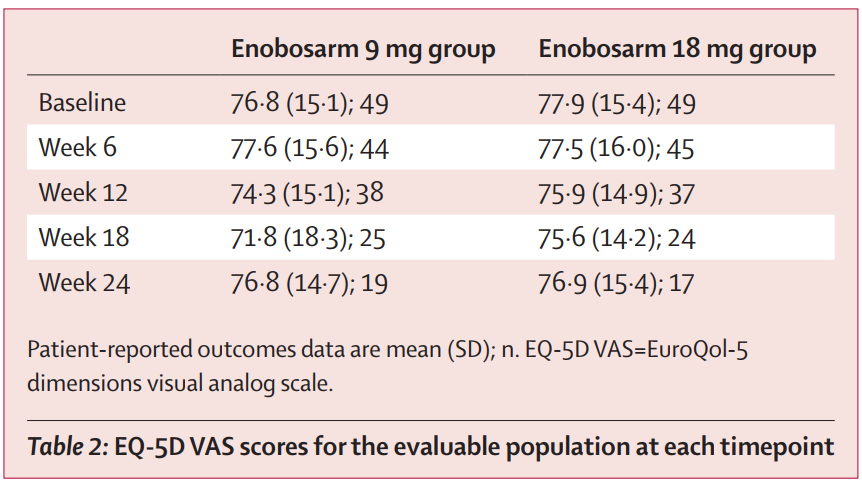 [4]Palmieri,Carlo et al.“Activity and safety of enobosarm,a novel,oral,selective androgen receptor modulator,in androgen receptor-positive,oestrogen receptor-positive,and HER2-negative advanced breast cancer(Study G200802):a randomised,open-label,multicentre,multinational,parallel design,phase 2 trial.”The Lancet.Oncology vol.25,3(2024):317-325.doi:10.1016/S1470-2045(24)00004-4
