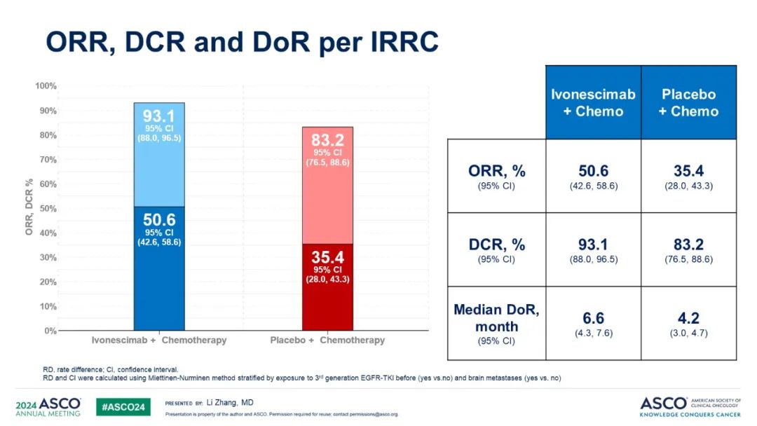 依沃西单抗组的总体缓解率为50.6%,安慰剂组为35.4%(P=0.006),中位缓解持续时间分别为6.6个月和4.2个月。