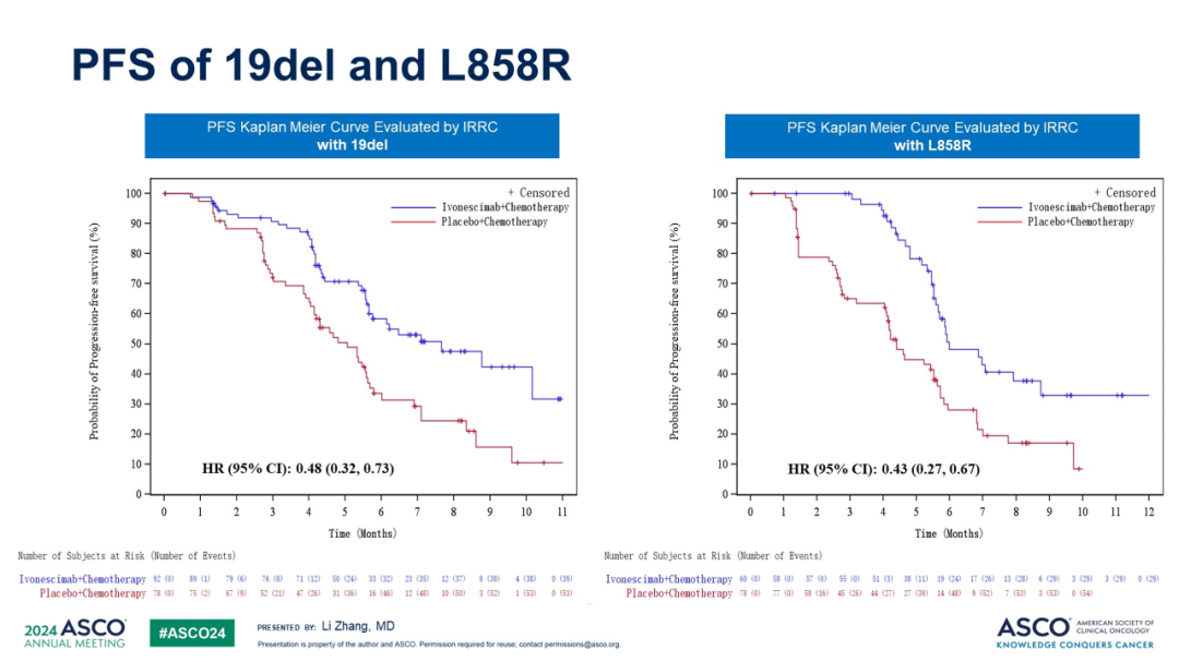 图3.EGFR外显子19 Del和L858R患者均有PFS获益